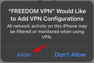 که، "اپلیکیشن Freedom VPN در حال پیکربندی